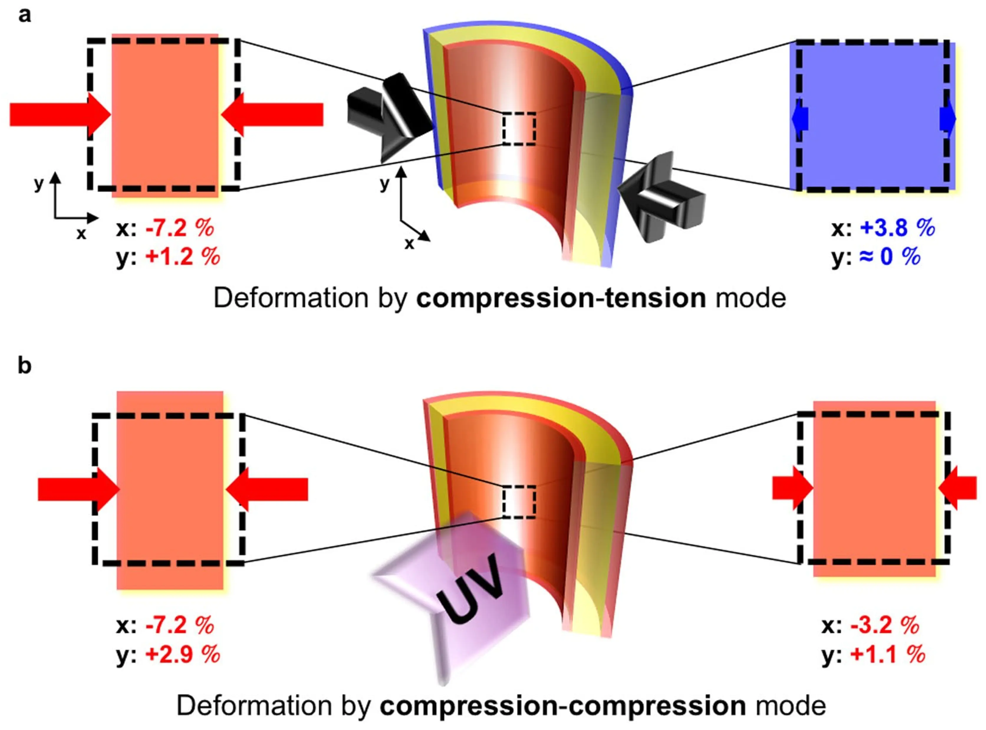 湾曲過程におけるフィルム内部のひずみ分布可視化に成功 ACS Appl. Eng. Mater., 1, 1669–1675 (2023) -