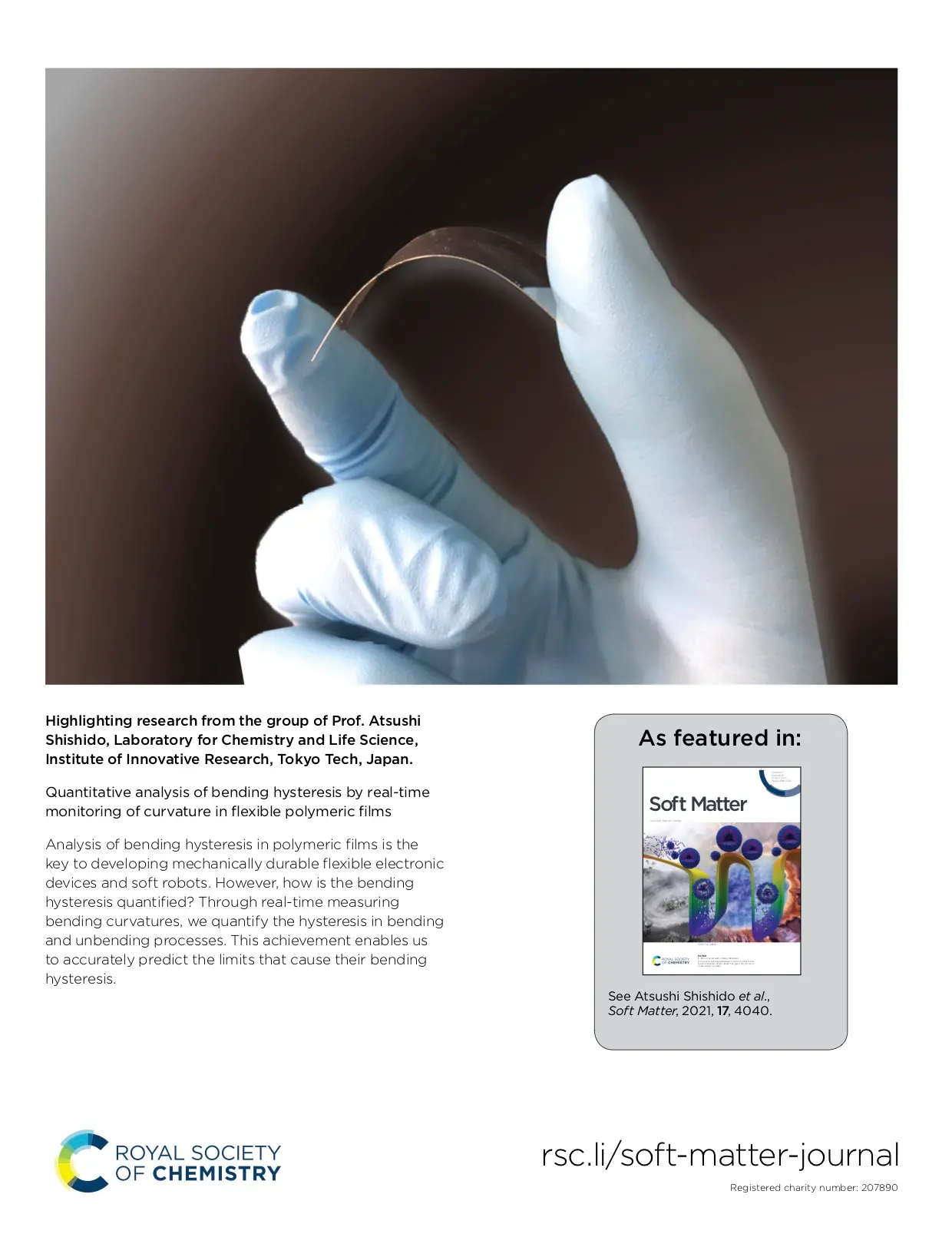 リアルタイム計測に基づき種々の高分子フィルムの湾曲疲労挙動を解析 J. Phys. Chem. C, 127, 14510–14517 (2023) -