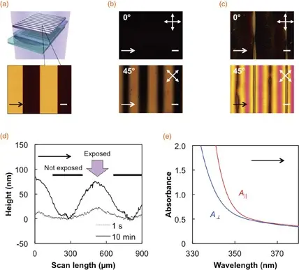 パターン露光による分子配向と凹凸構造の同時誘起に成功